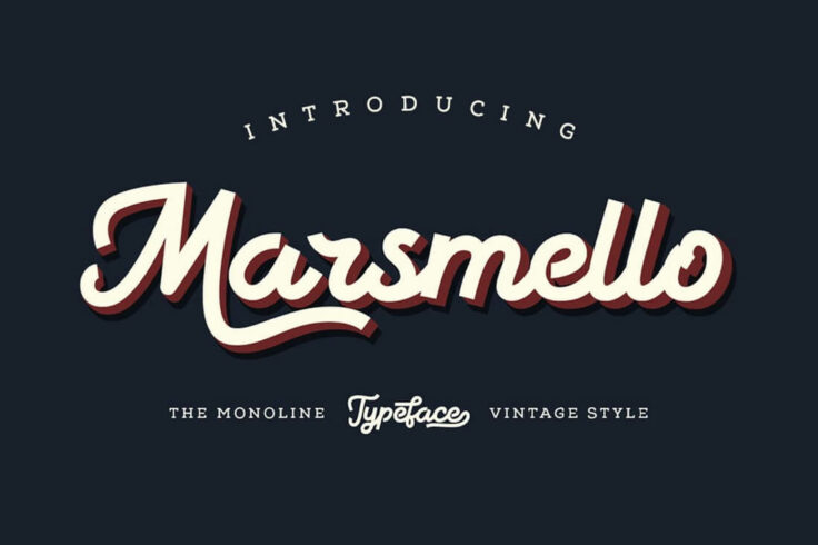 Marsmello is a vintage-inspired monoline font that is reminiscent of hand-painted signs. This font is ideal for use in logos, letterheads, invitations...